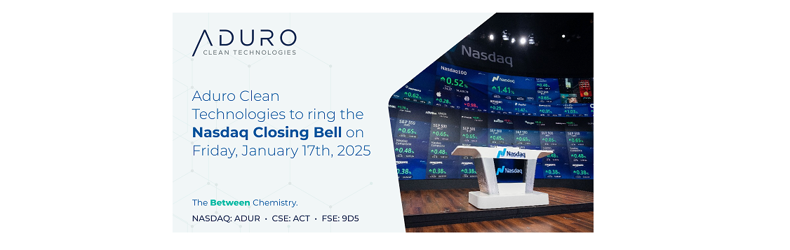 Aduro Clean Technologies, a clean technology company leveraging the power of chemistry to transform lower-value feedstocks—such as waste plastics, heavy bitumen, and renewable oils—into resources for the 21st century, today announced that the Company will ring the closing bell at the Nasdaq MarketSite in Times Square, New York, on Friday, January 17, 2025.