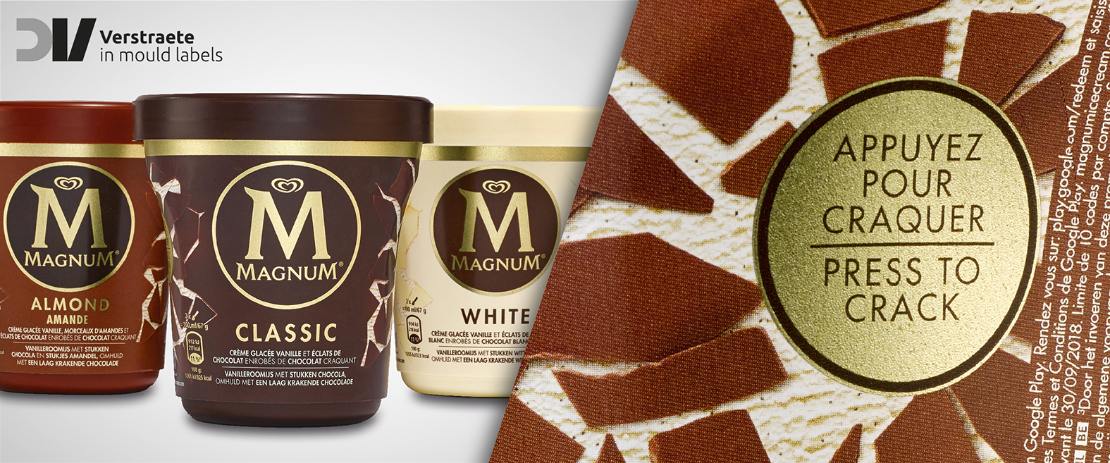 Benedict Adins, Regional Sales Manager Southern Europe for Verstraete IML: ‘The IML label plays a crucial role in the unique cracking experience with Magnum Pints. The Press to Crack instructions show exactly where you need to squeeze the container. And, the instructions are even more noticeable because of the Metallic IML, Matt and UltraGloss IML finish. The logo also has a luxurious glossy Metallic look. The metallic effect radiates luxury and quality, and creates a beautiful contrast with the Matt IML finish on the rest of the label. It makes the packaging a real eye-catcher in the freezer.’ Rahul Rajpal: ‘Consumers are completely in love with the cracking ritual of the new Magnum Pints. Squeezing it is a “cool and unique” experience and consumers love the iconic cracking sound of Magnum chocolate. The design and quality of the packaging have also received positive feedback.’