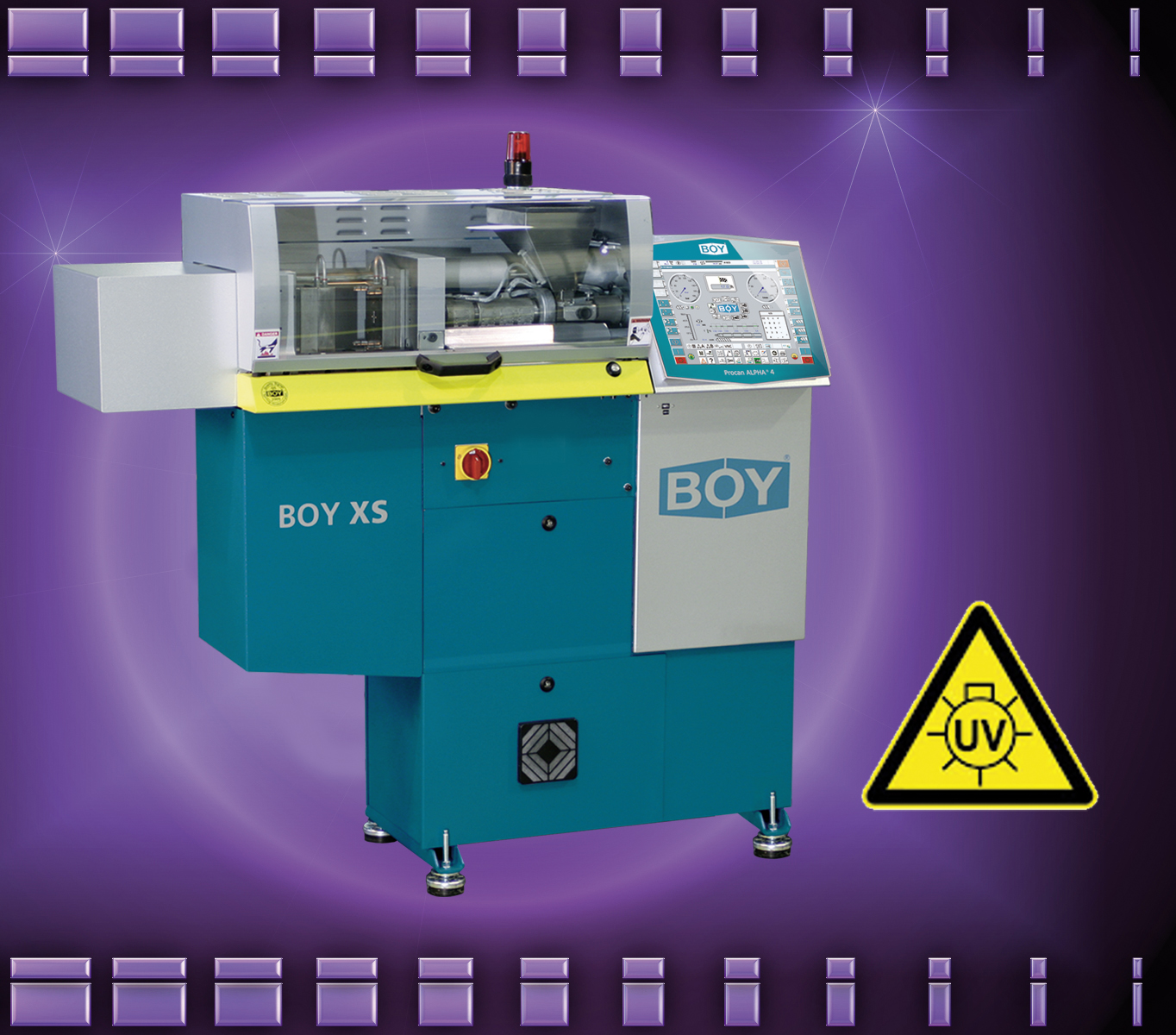 The lower temperature level during the processing paves the way to exploit additional areas of use and product applications with new material additives. For example, in the medical field, additives can be processed that normally cannot be exposed to high temperatures for a longer period of time. In cooperation with the University of Kassel, the company EMT Dosiertechnik and BOY a sealing ring mould for this “cool” process has been optimized for the UV-cross-linking in the mould. The transparent mould cavities are surrounded by a UV-lamp with precisely defined radiation. Only when the radiator is switched on the cross-linking of the two-component Silicone in the filled mould will start.