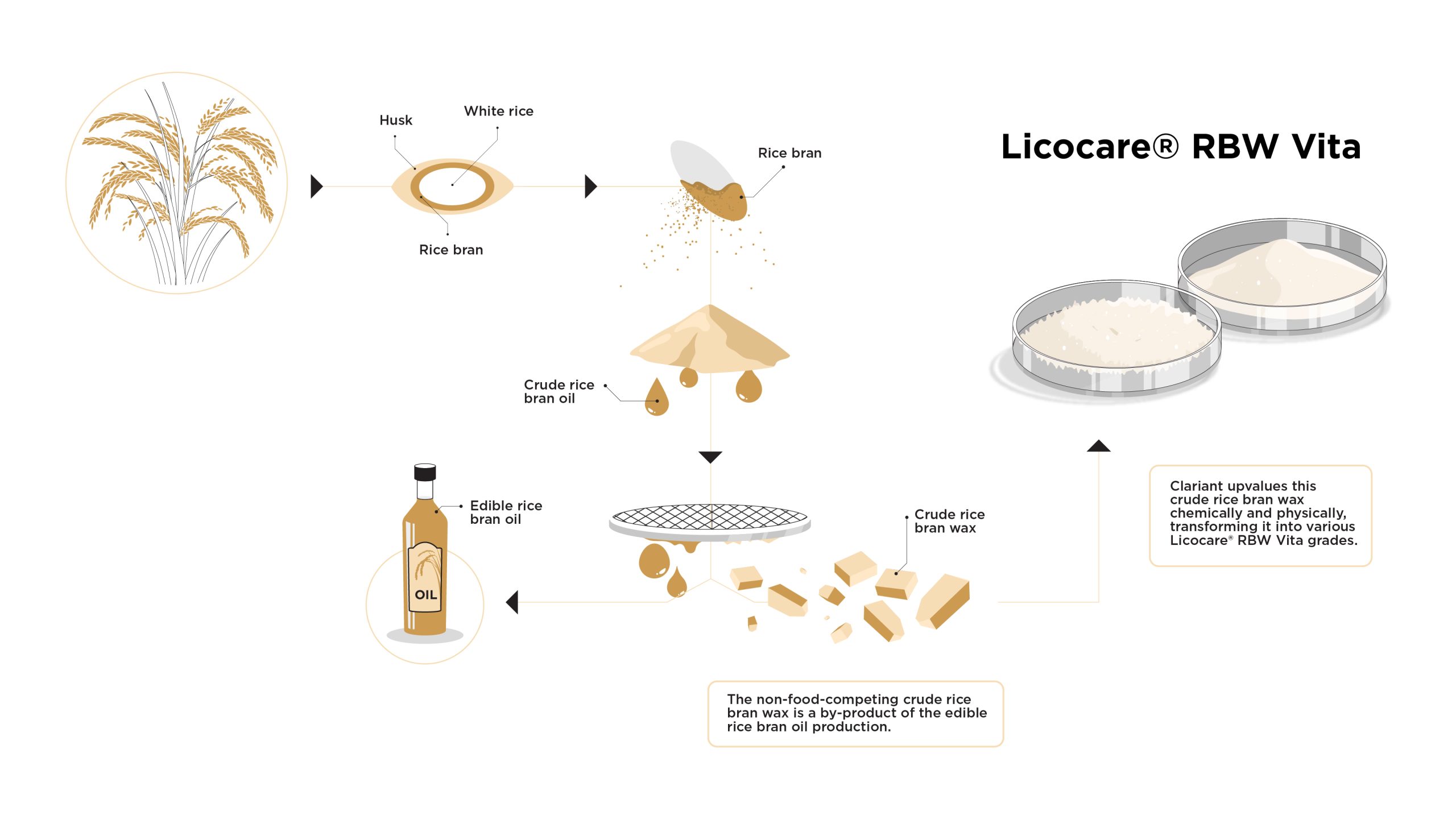 Clariant’s Licocare RBW Vita waxes are based on renewable bio-based rice bran wax feedstocks, a non-food raw material with at least 98% Renewable Carbon Index. They are well positioned to drive the chemical industry’s transition from fossil- to renewable-based carbon materials.