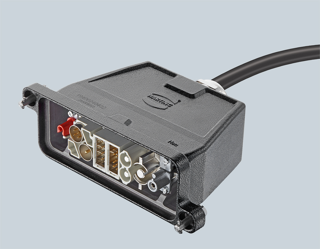 The Han Gigabit Module is the first matching modular connector to meet this requirement. The advantages: signal integrity improves significantly versus Cat. 6A. Shielding against interference also benefits, as Cat. 7A cables consist of four individually screened wire pairs which are surrounded by another screen braid.