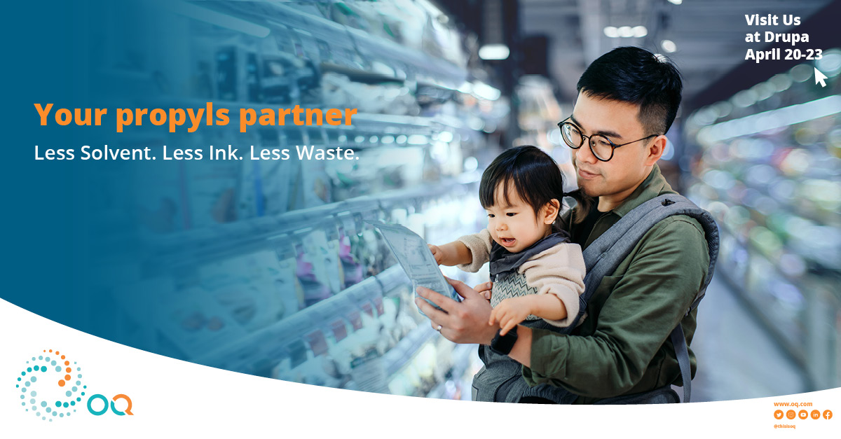 “By supplying both the polymers used for film substrates and the Propyls solvent system for printing, and with storage hubs strategically located in Europe, Asia and the Americas, we are to able bring more complete packaging and printing solutions to the industry,” says OQ’s Head of Global Marketing, Markus Hoschke.