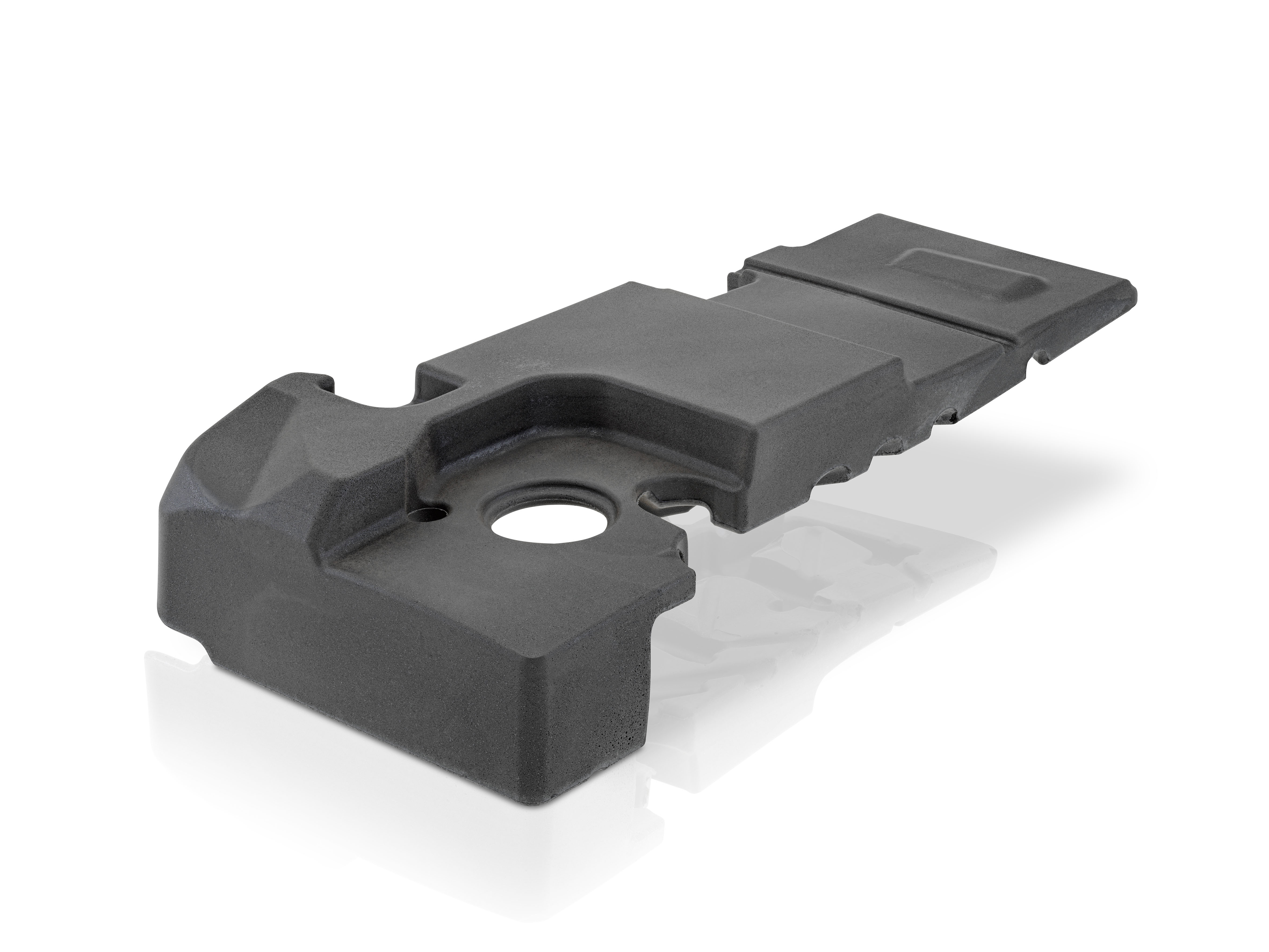 “Expandable graphite is an economical filler that offers clear advantages for many automation tasks,” explains Nicolas Beyl, President of KraussMaffei’s Reaction Process Machinery Segment. “Unfortunately, the material is sensitive to mechanical stress during processing“. A newly developed high pressure mixing head with low pressure bypass and a special premixing station for expandable graphite metering make its use as a flame retardant a particularly efficient alternative or addition to liquid admixtures. The fully automated process chain ensures short cycle times and high overall system efficiency in component manufacture.