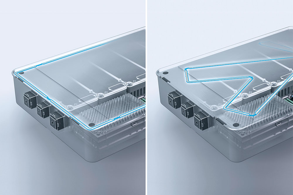 Freudenberg Sealing Technologies has developed a new solution – a foldable seal – that meets these requirements. Fixed aluminum elements equipped with a sealing profile on their outer edge not only provide stability – they integrate mounting points for the clips used to attach the seal at the housing cover. The elements are connected with one another using the continuous sealing profile, which exhibits high flexibility and can compensate for small dimensional deviations in the housing. Since the foldable seal is a complete component and does not need to be assembled from separate elements, the reliability of the installation rises dramatically. One key advantage of the approach: Metallic inlays ensure high electrical conductivity between the battery housing and its cover. This is important for the efficient screening of electromagnetic fields that result from the flow of current in the battery. Otherwise, the fields could disrupt other electronic components in the vehicle.