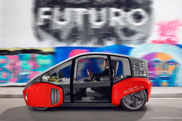 Caption: The HARTING miniMICA is built into the “Oasis” concept car from Rinspeed (right).