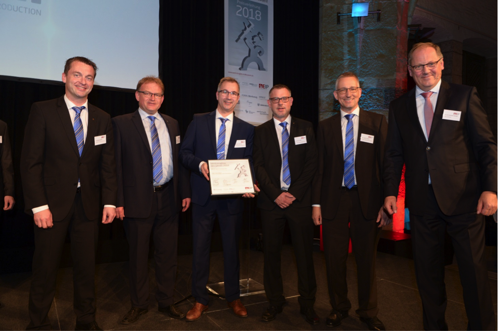 It’s a hat trick:HARTING Applied Technologies has won the “Excellence in Production” competition in the “Internal tool manufacturing under 50 employees” category for the third time. The company previously won in the same category in 2014 and 2016. Led by Managing Director Dr. Volker Franke and Rainer Hussmann, Head of tool manufacturing, the team went to Aachen to receive the award.