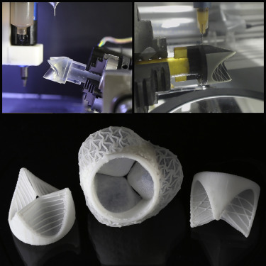 In an additive manufacturing process, virtual heart valve models are created with the aid of a CT scan and a preeflow eco-PEN300 one-component dispenser: Fergal Coulter from the “Complex Materials Group” of ETH Zurich undertook research for medical technology – more precisely for the additive manufacturing of artificial heart valves. They were manufactured using custom medical-grade polysiloxanes, together with chemicals which resulted in stiff, medium, or soft silicones following UV-triggered polymerization. These materials conform to biocompatibility standards for cytotoxicity, as well as irritation and skin sensitization.