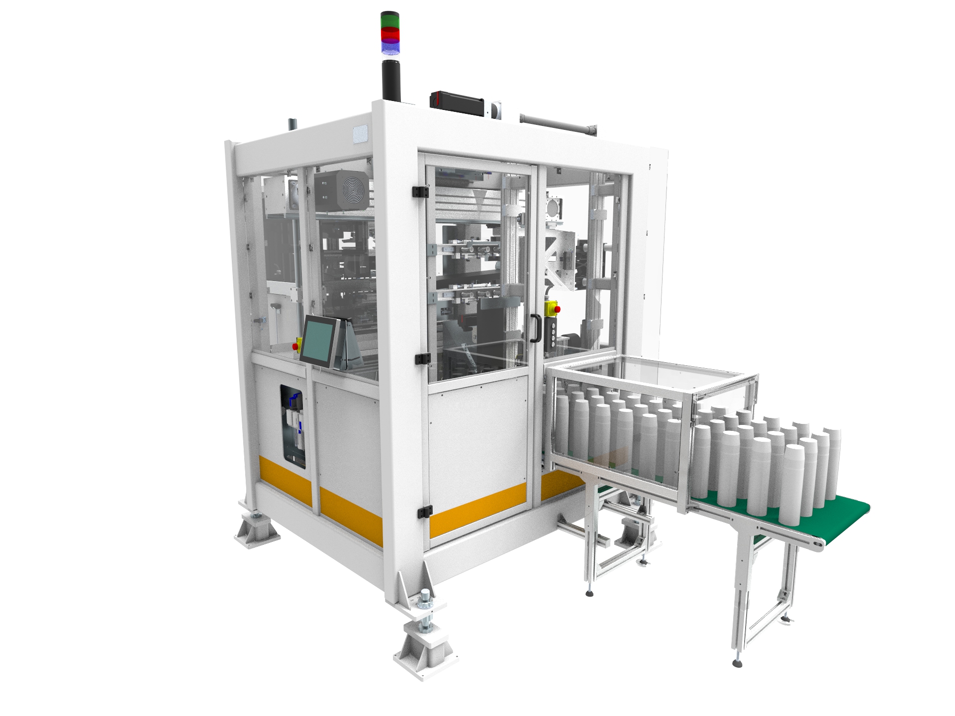 The angled positioning of the label magazines, where the label is aligned with the print image facing downwards, minimises label warpage, which ensures optimal, precise positioning of the labels. Even with very fast cycle times, the labels are smoothly separated and transferred to the mandrels. The removal, transfer as well as the depositing and stacking of the products feature a truly impressive level of automation