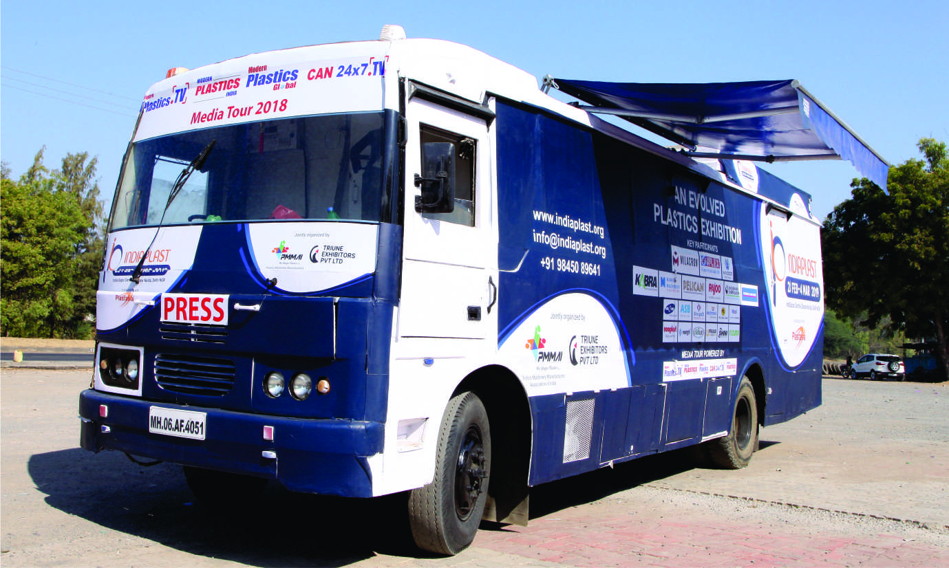 ‘Vanity Busis an amazing ingenous idea put forward by Mr. Ginu Joseph and Modern Plastics TV’, said Mr. Cyril Periera. For the first time , It has been implemented in the Plastics Industry and is India’s first studio on wheels in B2B Industry. The entire bus is branded with IndiaPlast and has travelled around the country to promote IndiaPlast 2019, engrossing everyone’s attention.