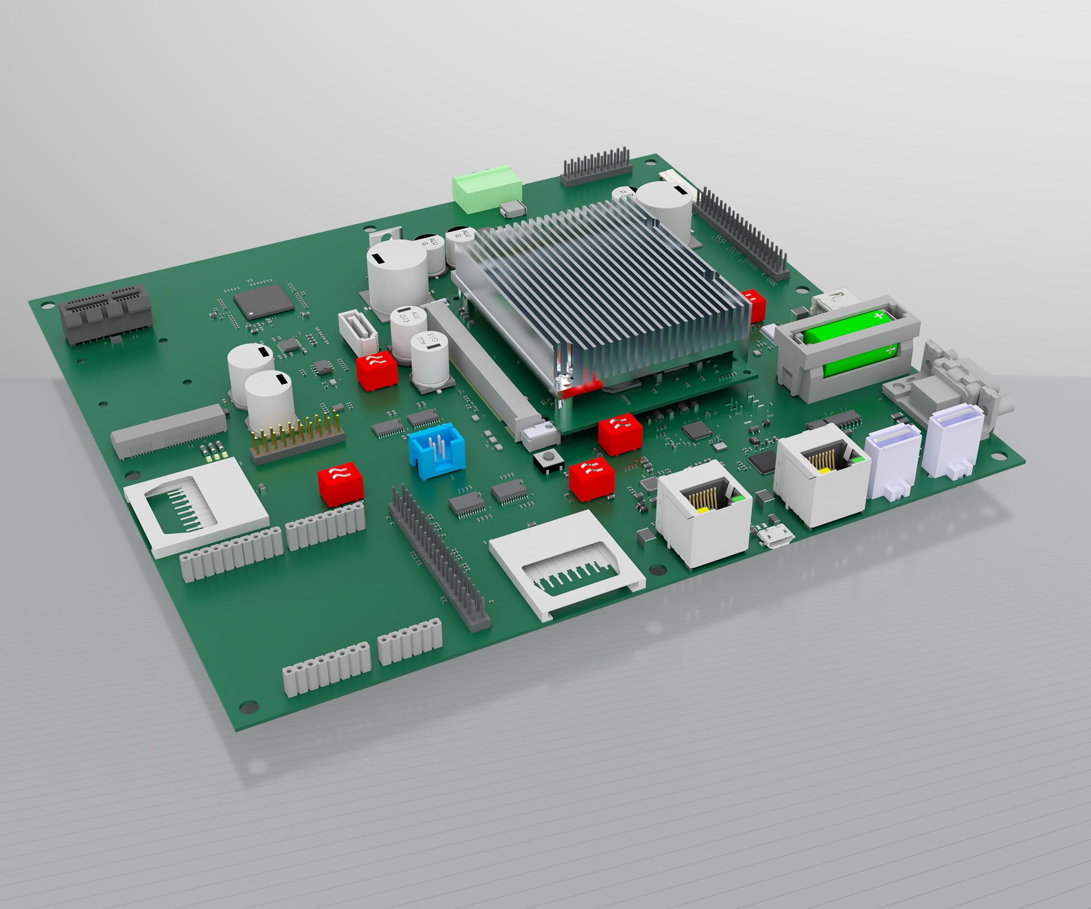 The result is a modular, flexible, and above all sustainable hardware platform, combined with a modern software architecture. The basis is a hardware platform with an 800 MHz processor which is used as a single, dual, or quad core variant depending on the application. The CPU module is pluggable and can be adapted to the requirements of a device via interfaces such as Ethernet, USB, PCIe, UART, SPI, I²C, and GPIOs. Higher performance or lower performance processors can be used depending on customer requirements.