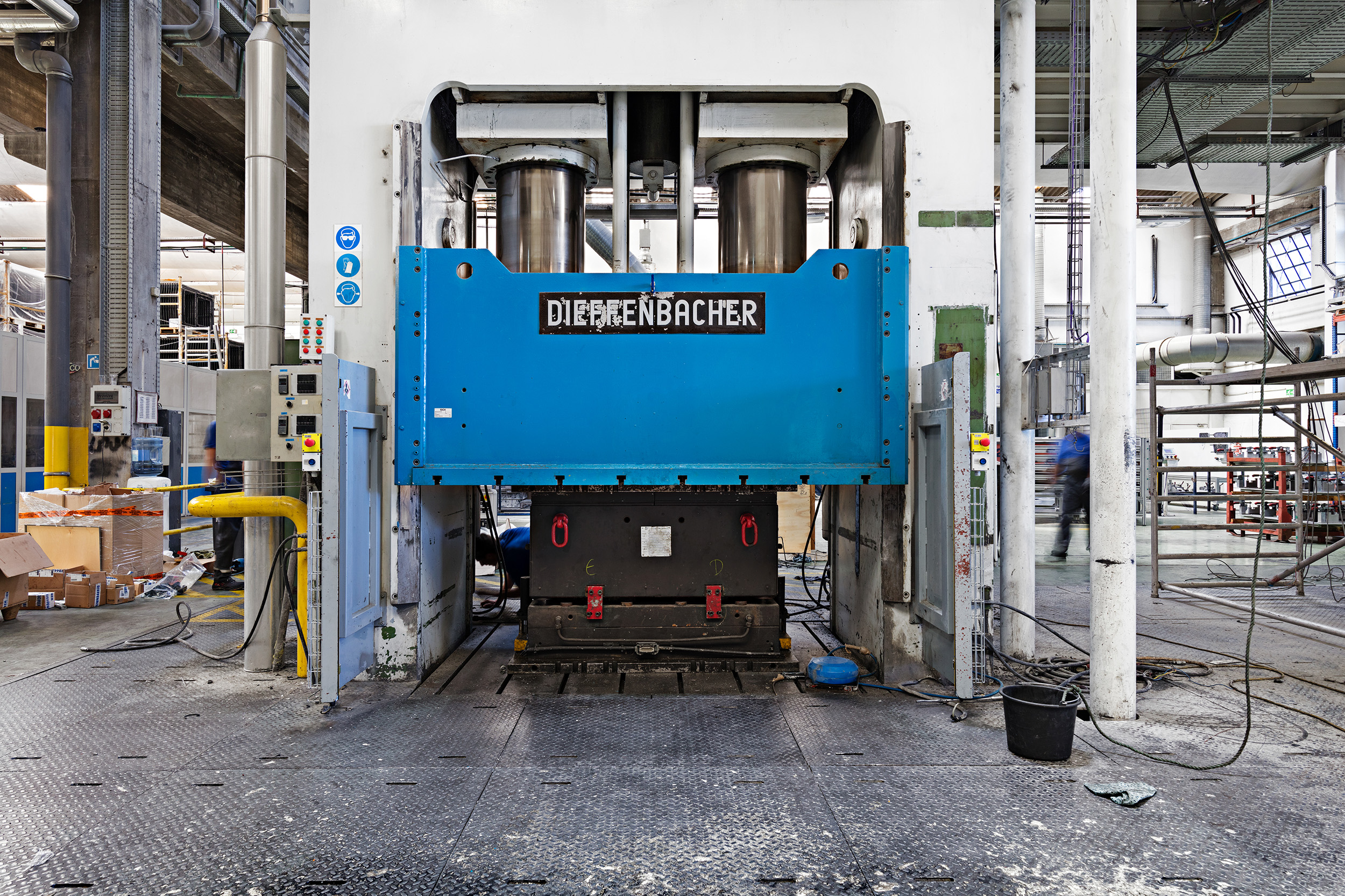 The second press—a Hoesch press from 1986—was used to produce SMC parts for the automotive industry. The valves, sensor technology and parallel motion system were out-of-date and needed modernization. Dieffenbacher replaced the dated system with a new state-of-the-art one. Moreover, the entire sensor technology and valves were refitted and the control adapted accordingly. As a result, both presses operate with greater accuracy in the production process, while the system availability is improved and better system diagnostics are provided.