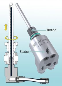 Depending on core dimensions and cooling power needs, the unit is offered in two sizes. The SDK-034, rated for a 2 – 6 mm cooling pipe diameter, supports particularly close cavity spacings of only 34 mm thanks to its compact stator design. The 45-mm-wide SDK-045 is intended for higher coolant flow rates and accommodates cooling pipes measuring from 6 – 10 mm in diameter. The default cooling pipe length is 300 mm with customized lengths being available on demand. The core attachment thread may be either metric fine or inch-type.