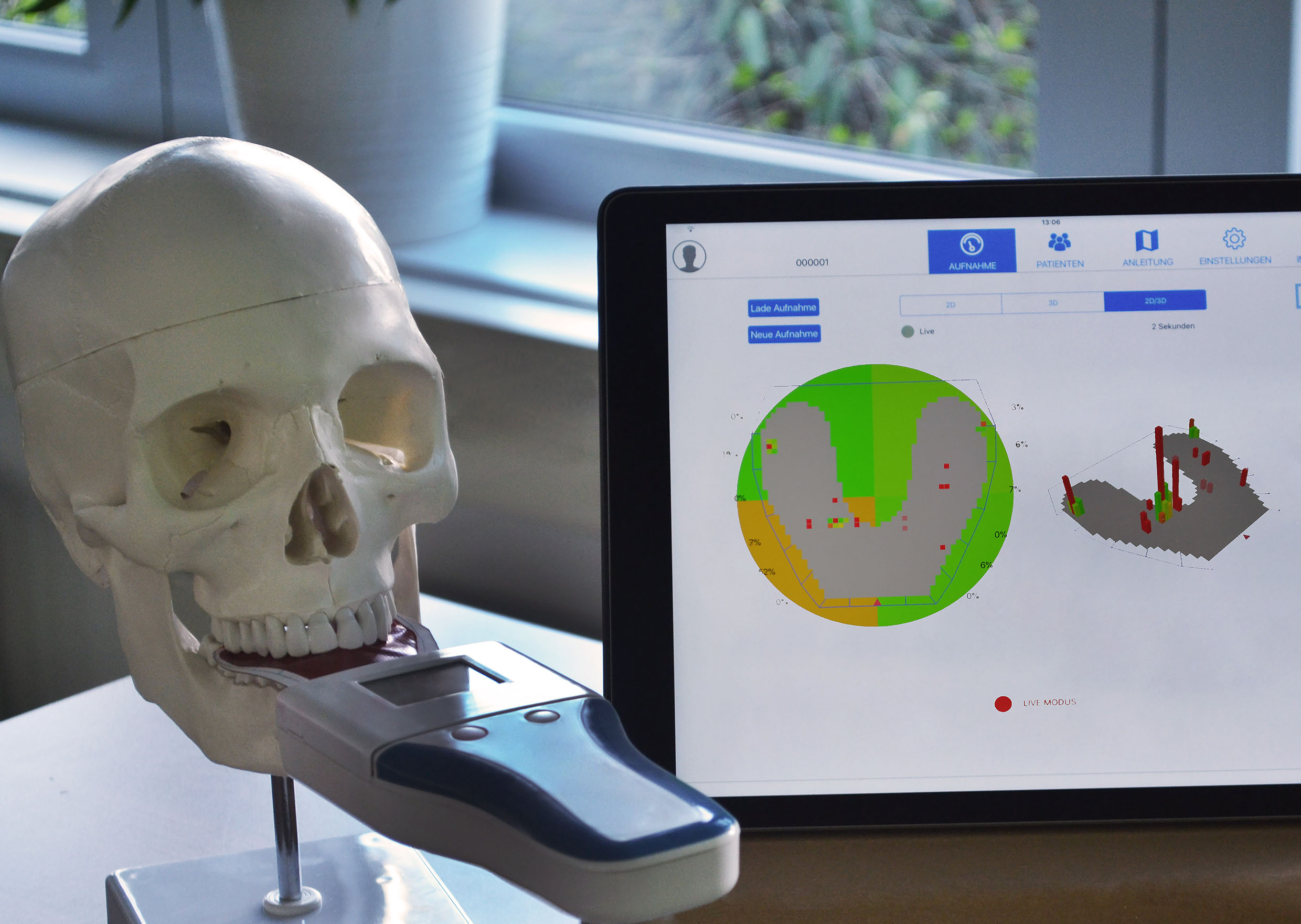 The project offers a digital solution for occlusion control with medical certification. It measures, visualizes, and stores the pressure distribution during the bite process. The printed pressure sensor matrix with more than 1000 pixels registers the pressure applied on each pixel with up to 150 Hz and sends the information wirelessly to a cloud, a tablet or other devices.