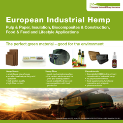 European Industrial Hemp Association (EIHA)The European Industrial Hemp Association (EIHA) is a consortium of the hemp-processing industry. It represents the common interest of industrial hemp farmers and producers, both nationally and on a European level. EIHA is the only European consortium in the industrial hemp sector. This sector includes, amongst other things, the use of hemp fibres, shavings, seeds and cannabinoids. Originally founded as an association for the European hemp industry, a quarter of the 130 EIHA members are based in countries outside the EU.