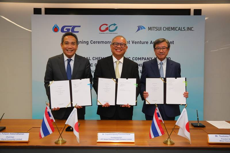 PTT Global Chemical PLC (GC) and together with TOC Glycol Co., Ltd. (TOCGC), a subsidiary of GC Group, announced to sign joint venture agreements with Mitsui Chemicals Inc