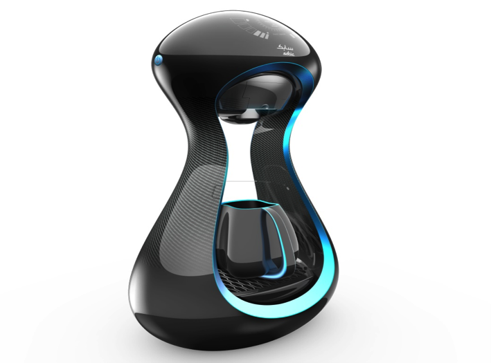 Sleek aesthetic coffee maker housing designed for cost-efficient injection molding with high-gloss and impact resistant, food-compliant SABIC®PP PPA20 impact copolymer.