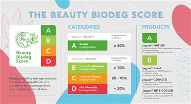 Next to developing the new biodegradable Jaguar® ingredients, Solvay experts created the Beauty Biodeg Score chart based on the OECD1 guidelines ranging from A to D. The two new ingredients Jaguar® NAT SGI, a readily biodegradable thickening polymer (score A), and Jaguar® Excel, an inherently ultimately biodegradable conditioning polymer (score B), meet the toughest criteria for biodegradability2. They complement Jaguar® HP-8 COS SGI for thickening and Jaguar® C500 STD for conditioning, both rated score B. Typical applications include shampoos, hair treatments, hair conditioners, styling gels, body washes and powder-to-liquid cleansers. It will be presented at Solvay’s booth during the in-cosmetics global exhibition in Paris from April 5 to 7.