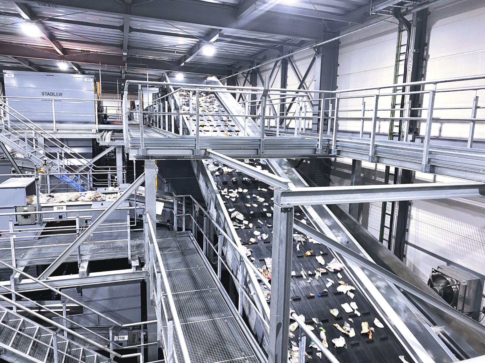 Due to the particular characteristics of the sorted materials and the space limitations in the building housing the plant, the project required the innovative thinking that STADLER is known for. “The plastic material we are processing at the plant is extremely light,” explains Ursina Mutzner, International Sales at STADLER. “When we ran trials with similar materials at our Test Center in Germany, we saw that the paddles in the double deck ballistic separator needed to be inclined more than the maximum 25 degrees the machine is designed for. So, when we designed the plant, we decided to place the ballistic separator on a slightly sloping steel structure in order to achieve the inclination of the paddles required to ensure the best sorting quality.”