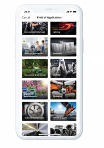 • Field of Application: all plastic applications are covered in M-HUB. You will be able to select the most important markets for your company, ranging from automotive to domestic appliances, electronics, etc…
