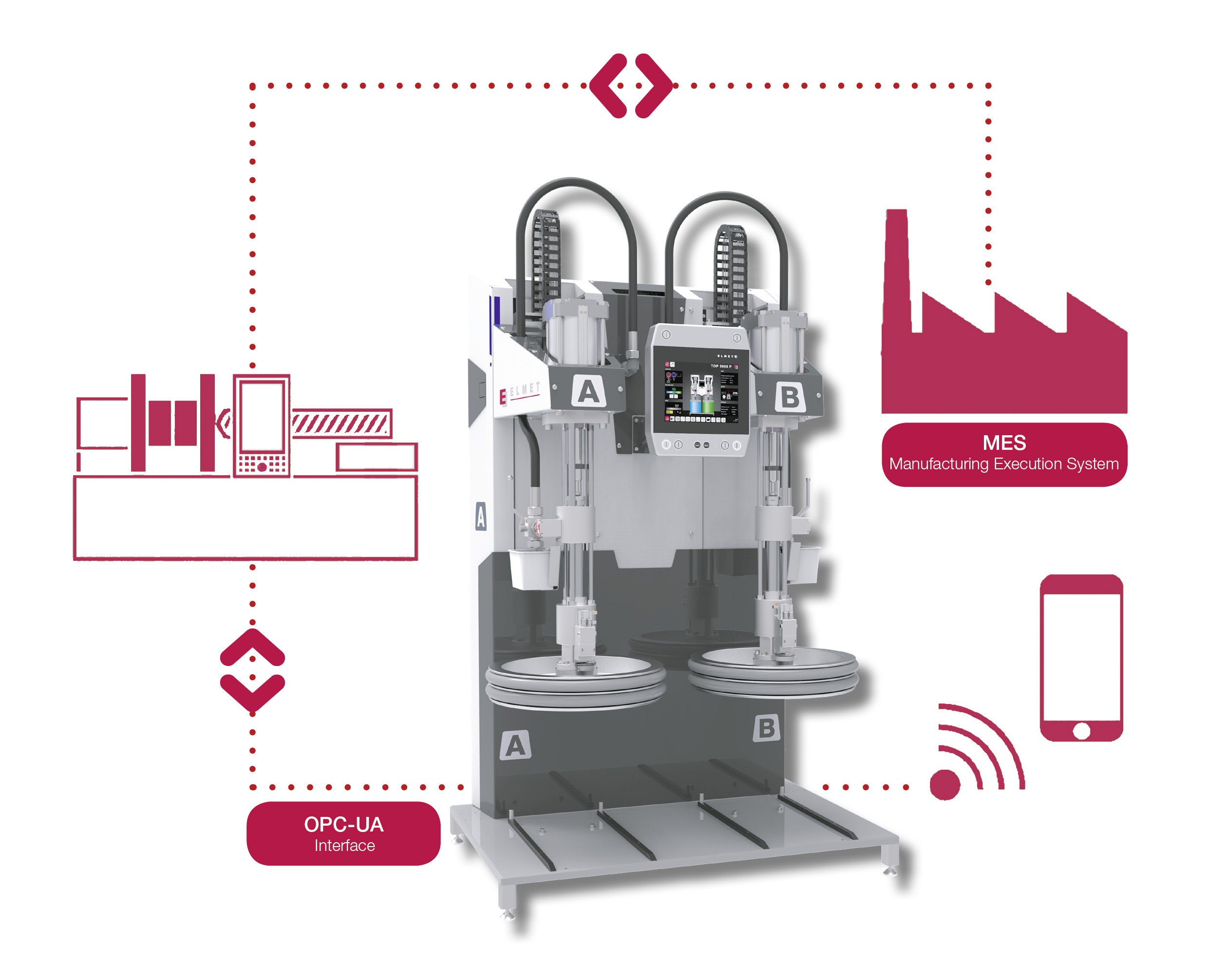 Oftering/Austria, October 2018 – ELMET (www.elmet.com), an internationally operating systems supplier for the entire field of injection molding of two-component liquid silicone rubbers (LSR), is the first producer in this segment to offer the option to connect its multi-component dosing system TOP 5000 P to the injection molding machine using an OPC-UA protocol. This “open platform communication” enables communication and automated information exchange from machine to machine (M2M) in real time. Consequently, ELMET has made it possible for its customers – without the need for a license – to integrate the dosing system into the production control system, plus much simplified operation of the dosing system from the injection molding machine. The technology is currently fully operational with ENGEL machines, whilst others are at the preparation stage.