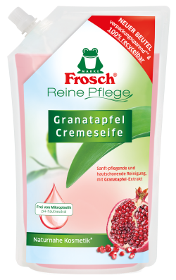 The patented stand-up pouch is the first packaging that complies with the three Rs — reduce, reuse and recycle. The pouch can be recycled completely, so the plastic remains in the closed material loop (recycle). Compared to a bottle, the pouch saves 70 percent on packaging material for the same amount of product (reduce). Finally, thanks to the refill packaging, a product bottle can be refilled repeatedly. It’s like having a refilling station at home (reuse). Still another special feature: the original bottle for Werner & Mertz Frosch consumer brand consists of 100 percent used plastic from post-consumer household waste collections.